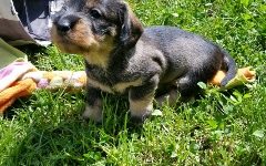 Die Welpen werden immer größer. Nichts ist vor Ihnen sicher. Wir haben jetzt einmal die ersten Standfotos gemacht und farbige Halsbänder angelegt. Das erleichtert doch die Ansprache. Die Bilder sind …